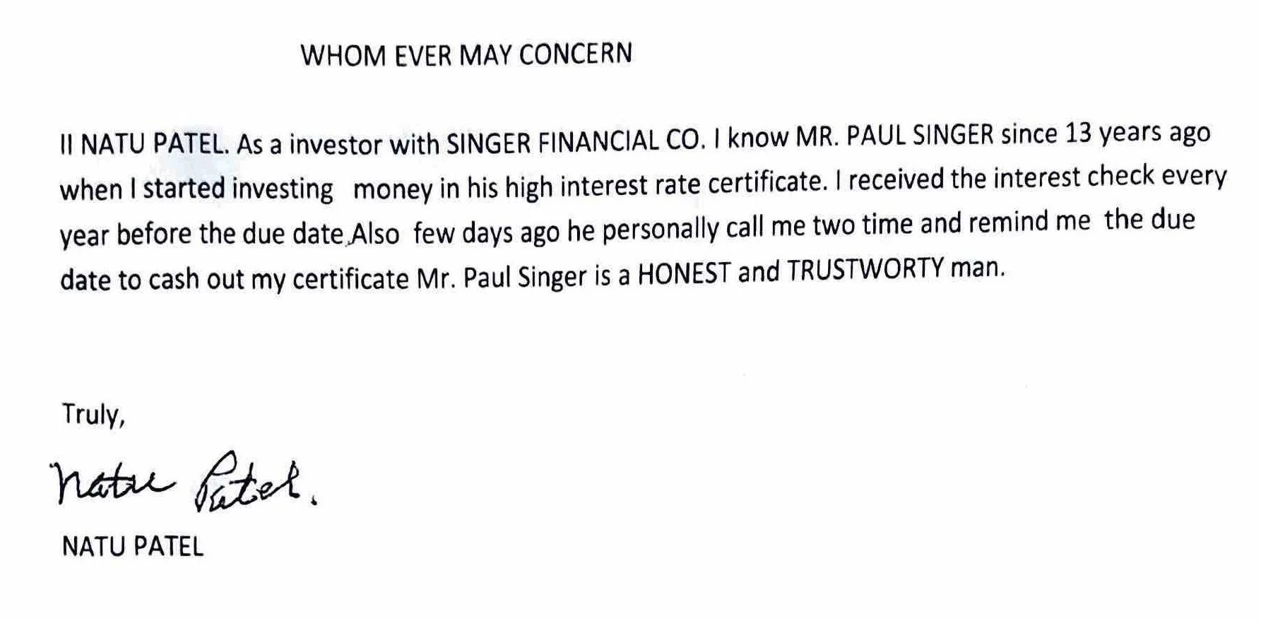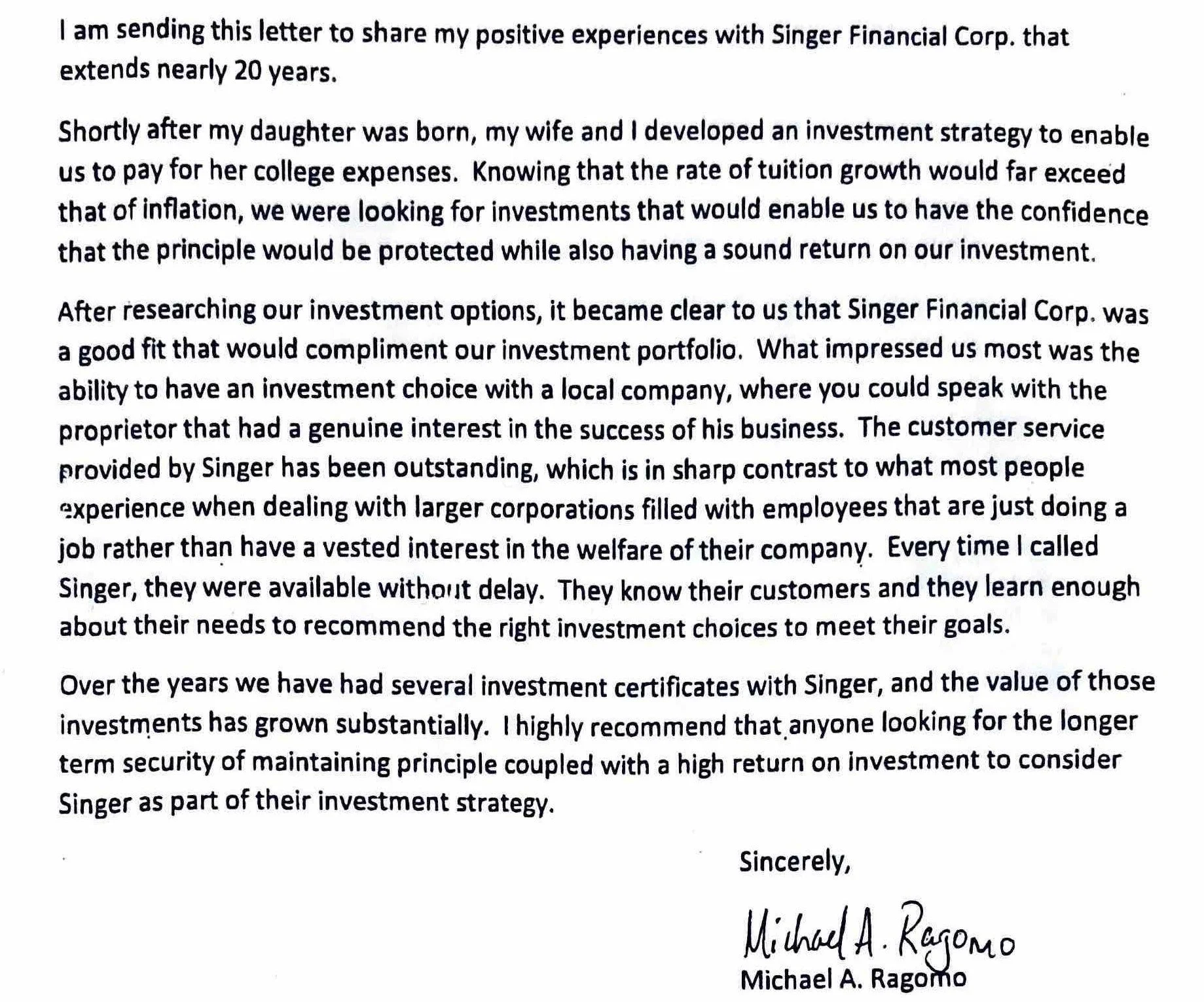 Singer Financial Corp.
